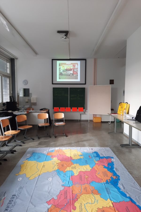 Meinen 1. Einsatz mit dem PolenMobil hatte ich Anfang September und es war großartig! Zusammen mit den Projektkoordinator ging es für mich nach Niedersachsen, um genau zu sein, nach Wolfsburg & Braunschweig. Mit einer großen Landkarte von Deutschland und Polen haben wir erst einmal landeskundliche Informationen vermittelt. Mit polnischen Souvenirs konnten wir auch kulturelle Inhalte aufgreifen.